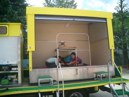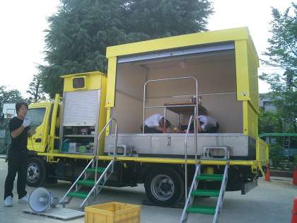 訓練後、4年生とひまらや学級が起震車体験をしました。