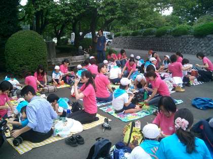 午前の部が終わると、体育館の外でおいしいお弁当をみんなで食べました。