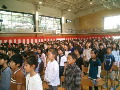 25分間の『よろこびのメッセージ』 旭の子どもたちの美しい歌声が体育館いっぱいに響きわたりました。来賓の皆様も同窓会の皆様も感動しておられました。