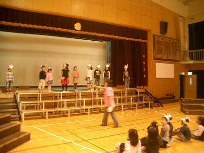 学年の進行状況によって、台本を片手にセリフを覚えている学年もあれば、動作をつけて練習している学年もあります。自分の役が決まり、子どもたちは張り切っています。