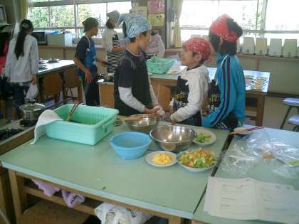 どのグループも協力し合い、包丁の使い方も安全にできました。