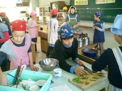 調理実習 6年2組 その1 公開日 2010/11/19 更新日 2010/11/19 今日のできごと 3・4時間目は6年2組の調理実習です。 いろいろな料理を作っていて、これまたとても楽しそうに協力し合って作っています。 学芸会を控えて忙しい時期ですが、調理実習は子どもたちも大好きです。 楽しそうにうれしそうに調理している写真をたくさん撮りました。教室に掲示してもらうことにしました。保護者会の時にご覧ください。