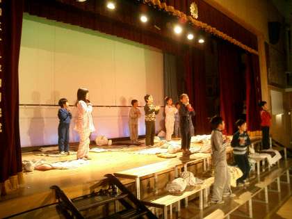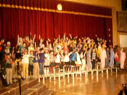 130周年記念学芸会 その2 2年生『遠足に行くんだ』 公開日 2010/11/27 更新日 2010/11/27 今日のできごと 元気な2年生が一生懸命演技しました。遠足にどうしても行きたい・・・・ そんな強い想いが劇中によく表れていました。2年生 頑張りました。 なお、動き回ることができないので、写真の撮影場所が今日はこの位置からしか撮れません。ご了解ください。