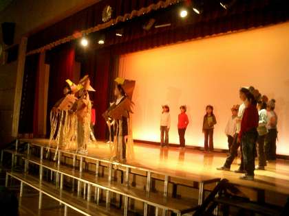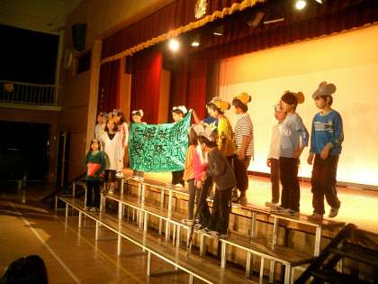 130周年記念学芸会 その4 3年生『冒険者たち』 公開日 2010/11/27 更新日 2010/11/27 今日のできごと 82名と一番大所帯の3年生、日を増すごとに演技や声の大きさがアップしてきました。今日はさらにアップし、ベストの出来栄えでした。旭小の130周年のことや「好き好き大好き旭小」の歌も上手で楽しい劇でした。