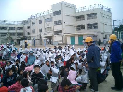 2時間目、避難訓練を行いました。全体的には、静かにしっかりとできました。