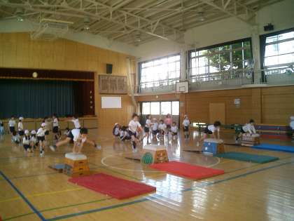 ほぼ全員が3段の跳び箱をかっこよく跳びました。
