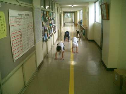 今日は、職員室前の廊下をきれいに掃除している3年生と、2階の教室を見まわってきました。一生懸命に教室や廊下をきれいにぞうきんでふいている姿が微笑ましいです。