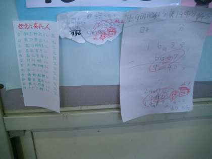 その紙には一生懸命計算した苦労の様子がよくわかるほど、消しゴムで消したあとがついています。今回は、タッチの差で4年Y君が早く持ってきました。