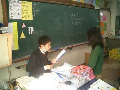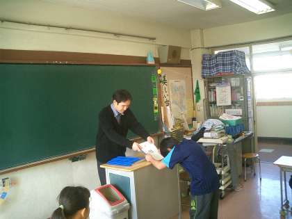 4時間目に、クラスの一人一人に担任の先生から通知表がわたされました。
