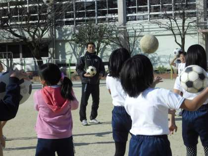 東京ヴェルディのコーチからサッカーを教えていただきました 公開日 2011/01/12 更新日 2011/01/12 今日のできごと 1月12日、青空の下、旭小学校校庭でサッカー教室が開かれました。5年生児童が「東京ヴェルディ」の都並コーチと亘コーチからプロの指導を受けました。真冬の気候にもかかわらず、汗をかきながら「技」と「コミュニケーション」の大切さを教えていただきました。サッカーの楽しさをたくさん味わうことができた1時間になりました。