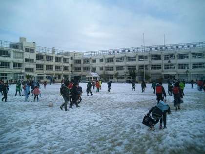 雪景色の校庭から その2 公開日 2011/02/15 更新日 2011/02/15 今日のできごと 朝、子どもたちは登校すると、すぐにあちらこちらで雪合戦を楽しんでいます。 旭小の特色の一つでもある朝遊びの時間には、たくさんの子どもたちが校庭で雪遊びをしました。大きな雪だるまを楽しそうに作っている子たちもいました。 久しぶりに雪の冷たさを感じた一日でした。