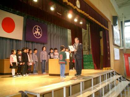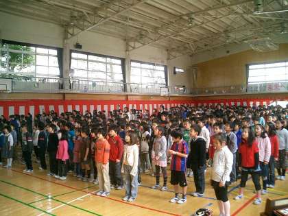 『平成22年度 修了式』 立派な態度で話が聞けました。 公開日 2011/03/24 更新日 2011/03/24 今日のできごと 朝、体育館で『平成22年度 修了式』を行いました。 どの子もきりっとした顔で、立派な態度で話が聞けました。 1年間の成長ぶりが、よくわかりました。 各学級の代表の人が修了証を受け取りました。 私の話は、校長室だより「輝け!旭っ子」に書きましたので、ご覧ください。 校歌も元気よく歌いました。 最後に転校する子たちの紹介をして、修了式を終えました。