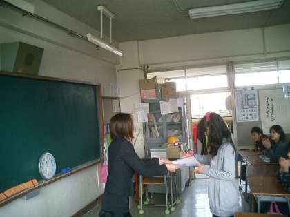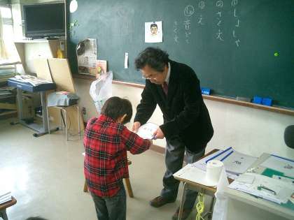 通知表をいただきました。 その1 公開日 2011/03/24 更新日 2011/03/24 今日のできごと 3時間目から4時間目にかけて、各学級で担任の先生から一人一人に通知表が渡されました。頑張っところやこれから努力するなど、一人一人に先生が声をかけています。子どもたちは緊張した顔つきで、担任の先生の話をしっかり聞いています。 全部の教室を回ったのですが、タイミングが悪くすでに配り終えたクラスもいくつかありました。6年生にとっては、小学校最後の通知表でした。