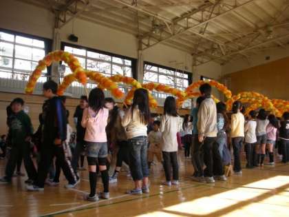 5年生が花のアーチを用意してくれました。6年生が手を繋いで入場してくれました。全校のみんなが手拍子で迎えています。代表委員が「ご入学おめでとうございます」とあいさつをしましたら、1年生は「ありがとうございます」と返事をすることができました。体育館が温かな雰囲気になりました。旭小○×クイズをやって楽しい時間を過ごすことができました。中休みには、1年生と遊んでいる上級生がいて微笑ましかったです。