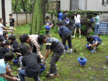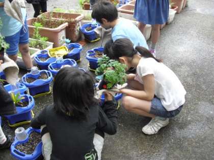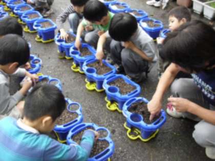 5/13 生活科(1年) 理科(3年) 公開日 2011/05/13 更新日 2011/05/13 今日のできごと 雨上がりの今日、1年生がアサガオの種まきをしました。担任の先生と一緒に、6つの穴をあけて、丁寧に種を入れていました。芽が出てくるのは、いつでしょう。 3年生は、苗を植えました。えだまめ・なす・ミニトマトなどの苗を一人一本、優しく植えていました。おいしい野菜が収穫できますように・・。