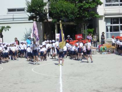運動会、午前の部が終了しました。時々、青空からお日さまが眩しく感じられることがありましたが、心地よい風が吹く、さわやかな午前中でした。午前の終了が予定より10分遅れましたので、午後の開始を10分繰り下げて、13時になります。