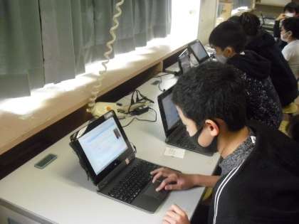 5年生が、社会科の学習で、タブレットを使って、世界の国調べをしました。