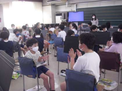 ばちの持ち方や音ののばし方のコツを教わりやってみました。皆、繰り返しやっていく中で、コツをつかみ始めていました。