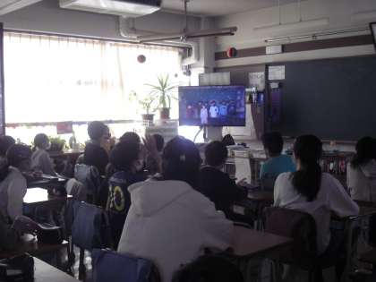 6年生を送る会(3月12日)その2 公開日 2021/03/12 更新日 2021/03/12 今日のできごと クイズの後は、各学年から、6年生にお祝いや感謝の気持ちを込めた表現をしました。 呼びかけがあったり、歌を歌ったり、踊ったりと、どの学年も趣向をこらしました。 さらに、ビデオを編集し、学年が上がるにつれて、効果音も入れて、その表現技法、編集技法は、素晴らしいものでした。