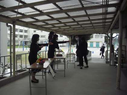 受付では、参加される保護者の方等には、検温表を提出していただき、入り口の密を避けるために、下履きのままの入っていただきました。