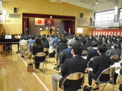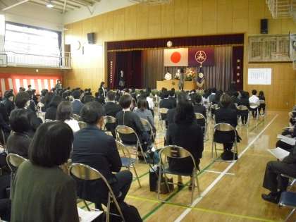 卒業証書授与では、担任が、呼名し、檀上で校長が一人一人に卒業証書を渡しました。