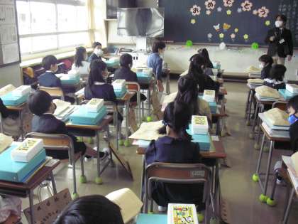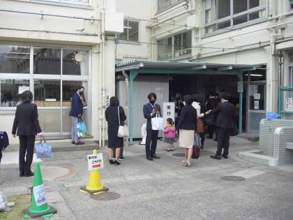 令和3年度 入学式(4月6日) 公開日 2021/04/06 更新日 2021/04/06 今日のできごと 学級ごとに入学式を行いました。 1年生が利用する昇降口で、受付を行いました。2組と3組の児童は、受付後、教室で入学式が始まるのを待ちました。
