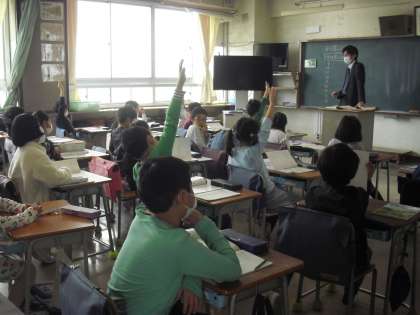 3年生が、算数の時間に、かけ算のきまりについて、法則性がないか考えて話し合いました。