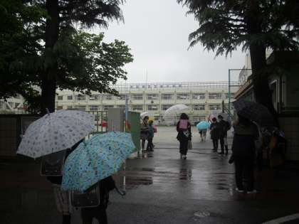 本日は、雨の中の登校でしたが、代表委員の児童が、正門に立ち、登校してくる児童に、「おはようございます」の挨拶をしました。