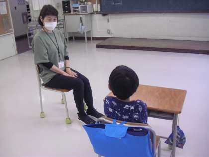 ひまらや学級の児童が、座り方を学び、担任の話をよく聞き、内容を聞き取りました。