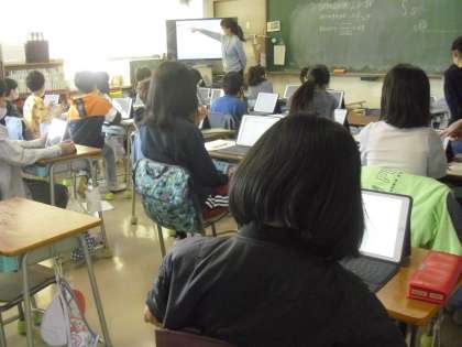 4年生が、タブレットでアプリ「チームズ」のやり方を学びました。