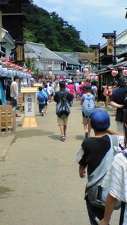 日光江戸村です。武士や忍者が歩いています。子ども達は、行動班で自由に見学しています。