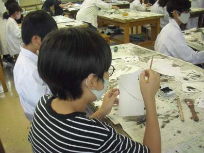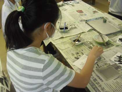 授業の様子(5月7日)その5 公開日 2021/05/07 更新日 2021/05/07 今日のできごと 6年生が、図工の時間に、「すみの世界」を学習しました。墨の特徴を生かして、工夫して表すことを目標に、ぼかしやにじみ、かすれ等、はけやスポンジも使って、様々な表し方をやってみました。