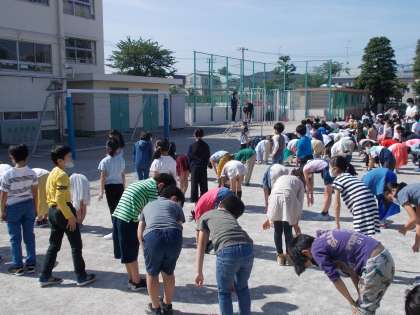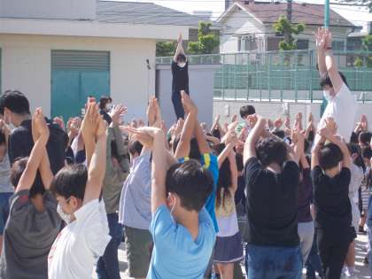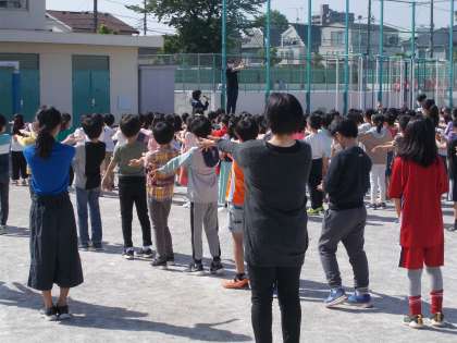 体育朝会(5月8日) 公開日 2021/05/08 更新日 2021/05/08 今日のできごと 土曜授業の朝には体育朝会を設定しています。 今回は体ほぐしの運動の一環としてストレッチに取り組みました。 うっすらと額に汗をにじませている児童もいました。程よく体を動かす心地よさを味わえたようです。