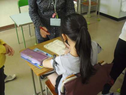 4年生が、算数の時間に、「何倍になるか考えよう」を目標に、わり算をして、何倍になるか計算しました。
