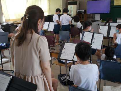 6年生が、音楽科の時間に、ハンドクラップでリズム創作、(「ずれの音楽をつくろう」)、聴き合いを行いました。