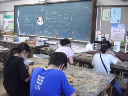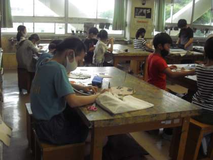 4年生が、図工の時間に、「ふしぎかめん」と題して、材料の使い方を工夫して、自分のイメージを表しました。