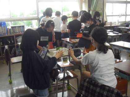5年生が、理科の時間に、「種子の発芽と成長」の学習で、発芽の様子を、よく見て観察したり、タブレットで撮影したりして調べました。