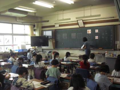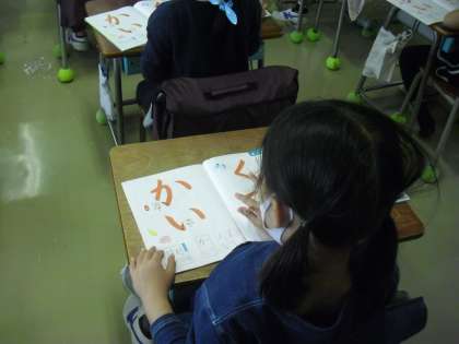 1年生が、国語の時間に、「ひらがなのとめ、はらい、はね」に気を付けて、文字の練習をしました。