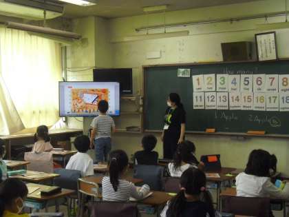 授業の様子(5月18日)その3 公開日 2021/05/18 更新日 2021/05/18 今日のできごと 3年生が、外国語活動の時間に、ALТの先生と、「How many?」の言い方を学びました。 実際に、図を見ながら、数えて発音しました。