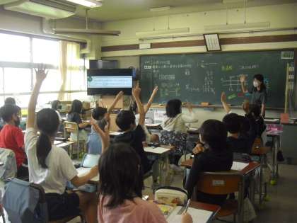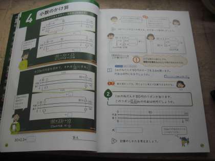 5年生が、算数の時間に、小数のかけ算の学習をしました。小数のかけ算の意味と計算の仕方を、既習事項をもとに考えました。