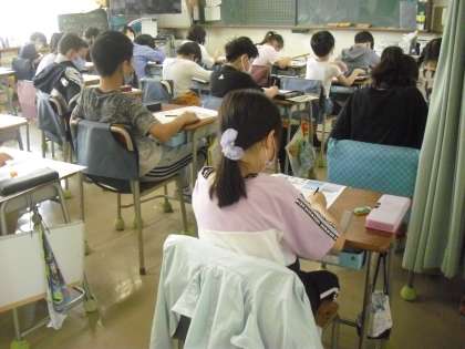 授業の様子(5月20日)その2 公開日 2021/05/20 更新日 2021/05/20 今日のできごと 4年生が、理科の時間に、学習した「1日の気温と天気」について、テストをして学習内容を確かめました。