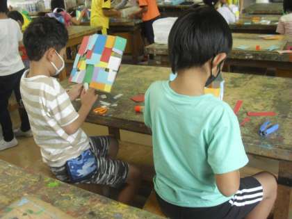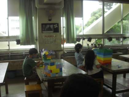3年生が、図工の時間に、「紙の使い方を工夫して、イメージするおうちにしょう」という目標で、「紙の大工さん」として表現活動をしました。