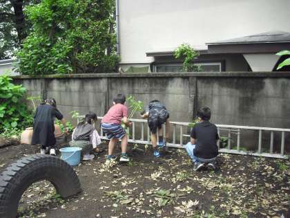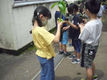 3年生が、理科の時間に、育てているヒマワリの植え替えをしました。