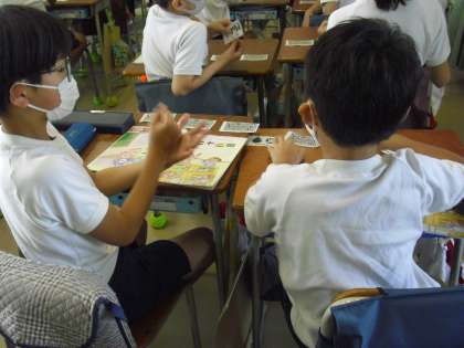 授業の様子(6月1日)その2 公開日 2021/06/01 更新日 2021/06/01 今日のできごと 4年生が、外国語活動の時間に、「What day is it?」と1週間を英語で、どのように発音するか、カードを使ってゲームをしながら発音しました。