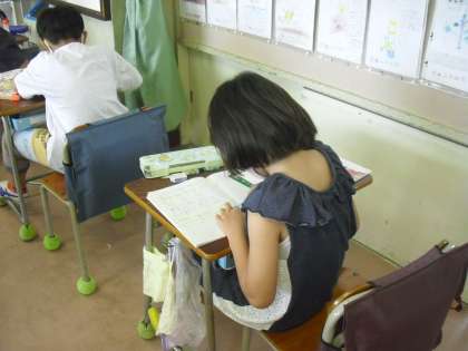 授業の様子(6月1日)その6 公開日 2021/06/01 更新日 2021/06/01 今日のできごと 2年生が、算数の時間に、テープで長さ比べをして、どのようにしたら、皆に分かるように長さを伝えられるか考えました。 考えたことを、自分の考えとしてノートに表現して、発表しました。 自分の考えをもつためには、算数の場合は、計算の式や図や言葉で表現するという個の学習から始まります。考える力を伸ばすためにも、まず、自分の考えを表現することを大切にしています。