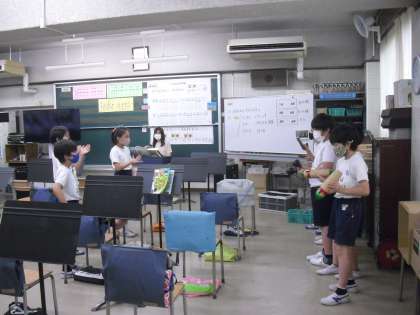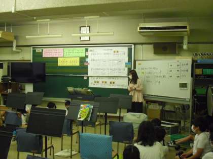 授業の様子(6月4日) 公開日 2021/06/04 更新日 2021/06/04 今日のできごと 4年生が、音楽の時間に、「拍にのってリズムを打つ」を目標に、マスカラ、ギロ、クラベスでリズム打ちをしました。