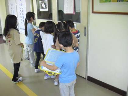 1年生が、生活科の時間に、学校たんけんをしました。