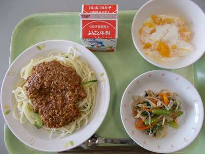 献立は、ジャージャー麺、牛乳、塩ナムル、フルーツヨーグルトでした。