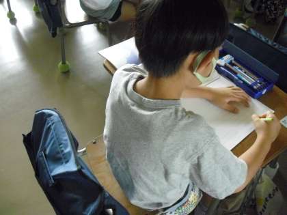 授業の様子(6月14日)その3 公開日 2021/06/14 更新日 2021/06/14 今日のできごと 1年生が、教科「日本語」の時間に、サトー 八ロー作の詩「にゅうどうぐも むくむく」を視写しました。