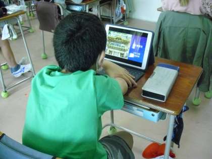 6年生が、日光のことについて調べたことを発表するため、パワーパイントで画面づくりをしました。